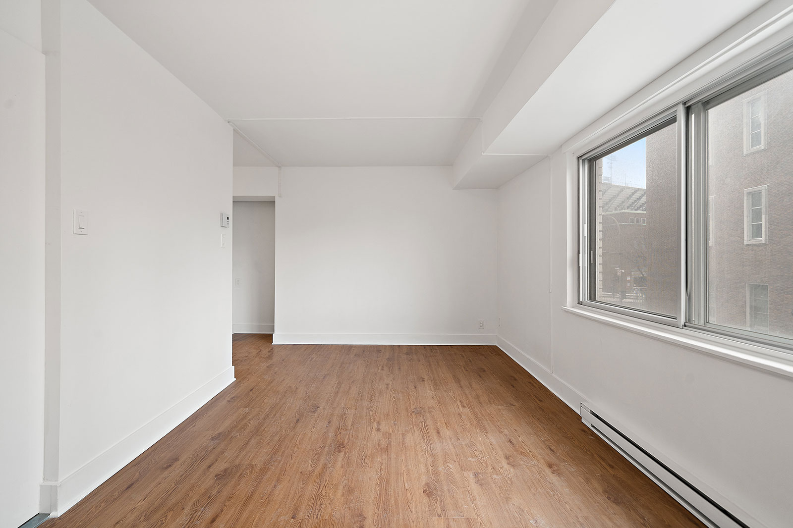 Lire plusUn immeuble nouvellement rénové avec des vues panoramiques. À quelques pas de l’Université McGill, Métro McGill, Mont-Royal, commerces et restaurants. Système de caméras et d’intercom dans l’immeuble. Il y a 4 lignes de bus (144, 480, 80, 129) qui circulent à proximité. Les tailles d’appartements disponibles dans cet immeuble sont : Studio